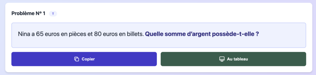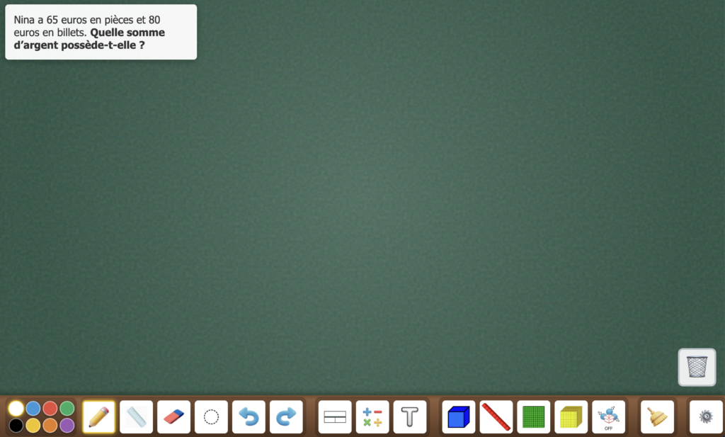 Lorsqu’on veut résoudre un problème, un « tableau » est présenté avec divers outils qui permettent d’avoir une visualisation claire de certains éléments.