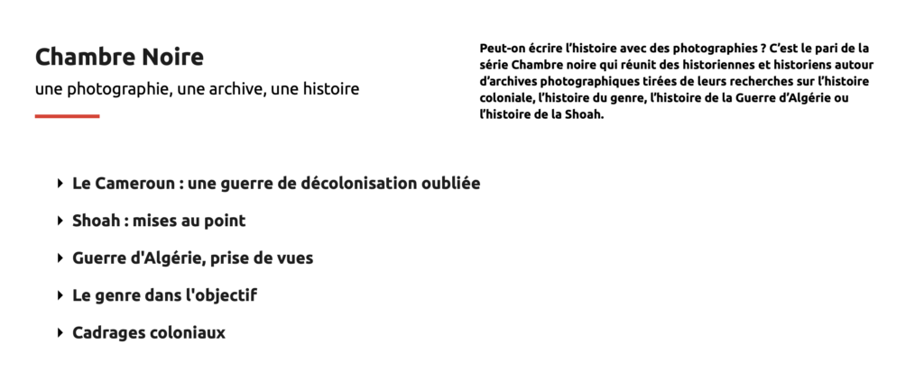 – par thématique (« De l’Humanisme aux Lumières », « Guerres, traces, mémoires », …)